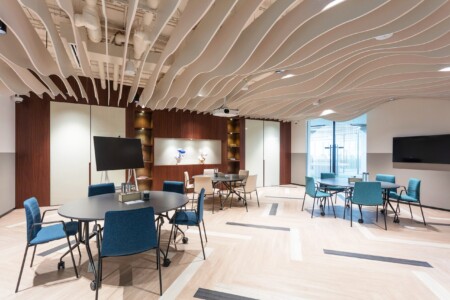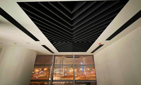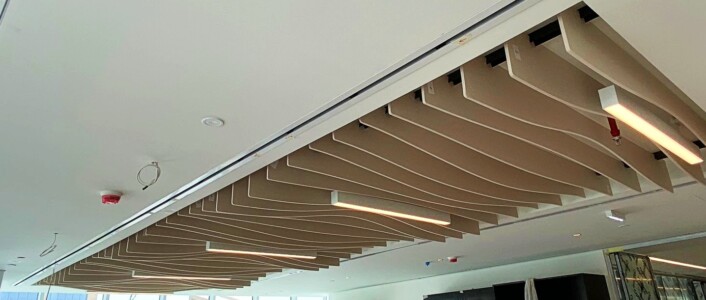 Explore a selection of real-world projects featuring DecraBaffle polyester acoustic baffles. From corporate offices to educational spaces, these installations show how vertical acoustic control can be both functional and visually refined. Each image highlights how DecraBaffle panels help reduce reverberation while complementing the overall interior design.