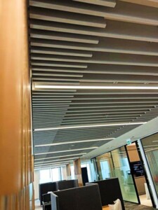 DecraBaffle panels are ideal for ceilings in open-plan offices, classrooms, lobbies, and other spaces that require acoustic treatment with a vertical design element.